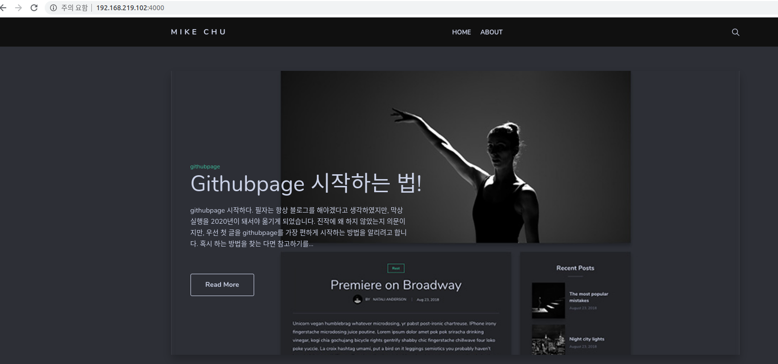 _posts/ 아래 경로에 글을 포스팅하고 나서 위 주소(https://localhost:4000)를 입력하면 접속이 가능합니다. 네, 저는 나스에서 위 명령어들을 실행하기 때문에,